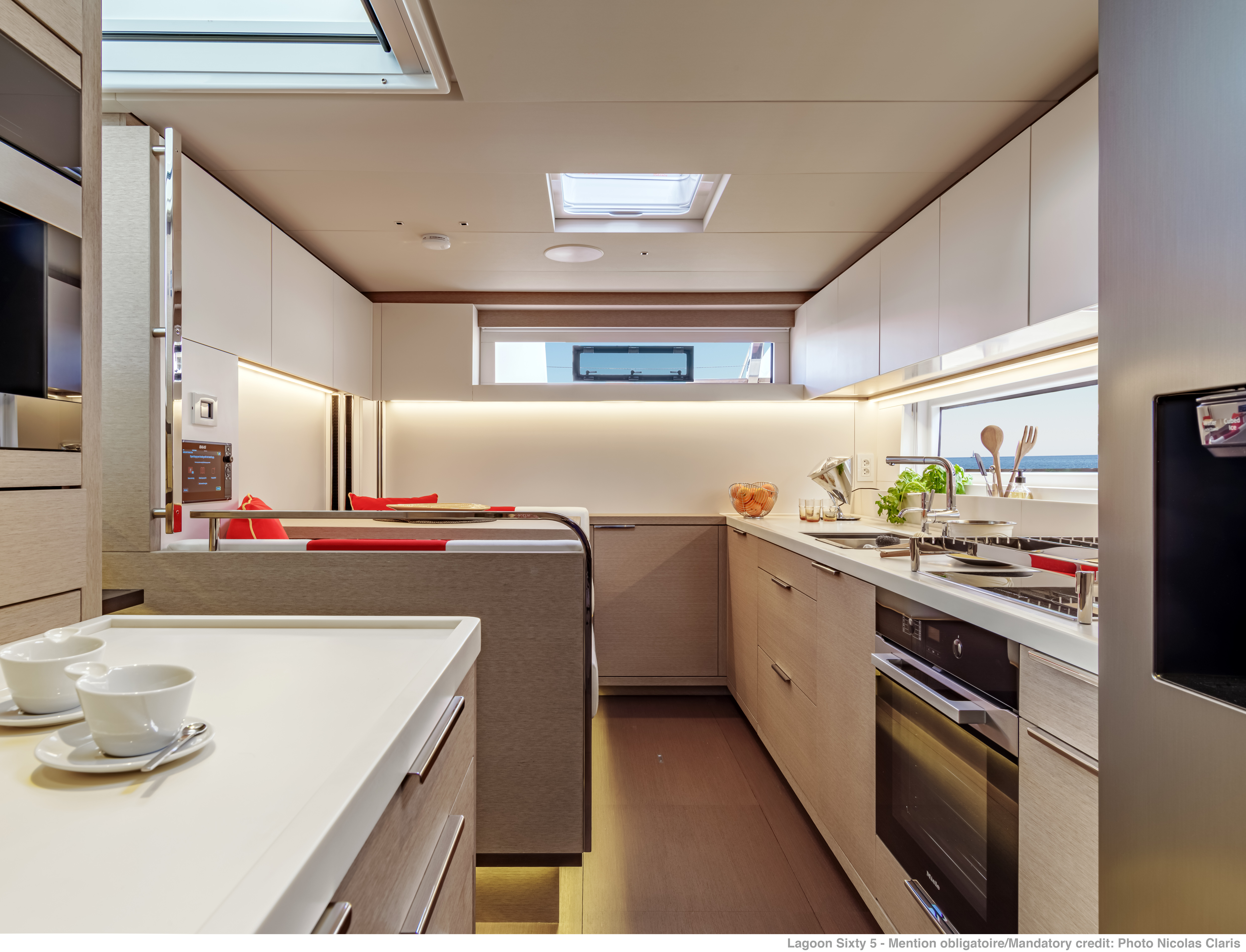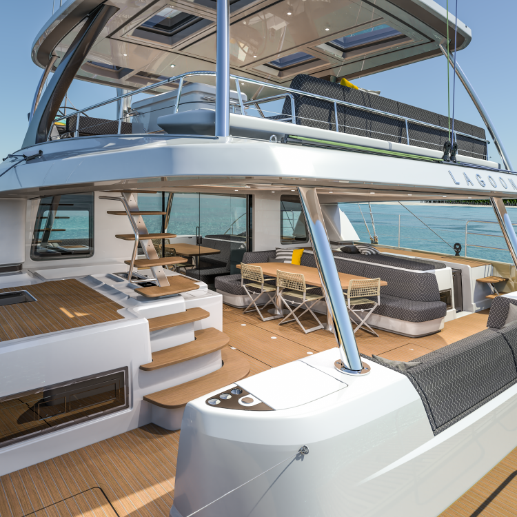 "Aboard the Lagoon SIXTY 5, you can look straight through fore to aft and out over the surroundings with commanding 360° views. The main saloon is comfortable and luxurious with open spaces and natural light. The same design concept is applied to cabins, which enjoy good overhead height and excellent natural light and views. The level of finishing repeats the luxury from the saloon while the owners cabin picks up and improves concepts from the successful Lagoon 620: a private water access aft like a terrace on the sea. Of course the master cabin is my favourite place on board, where luxury, comfort and style are best combined."