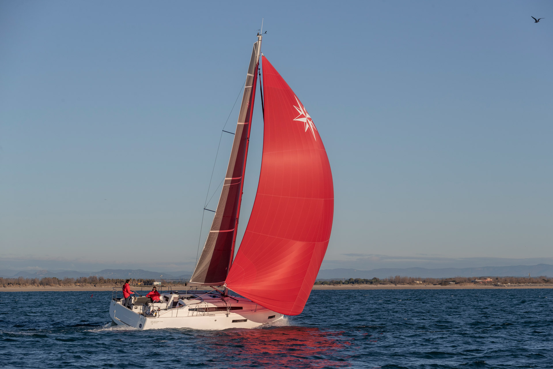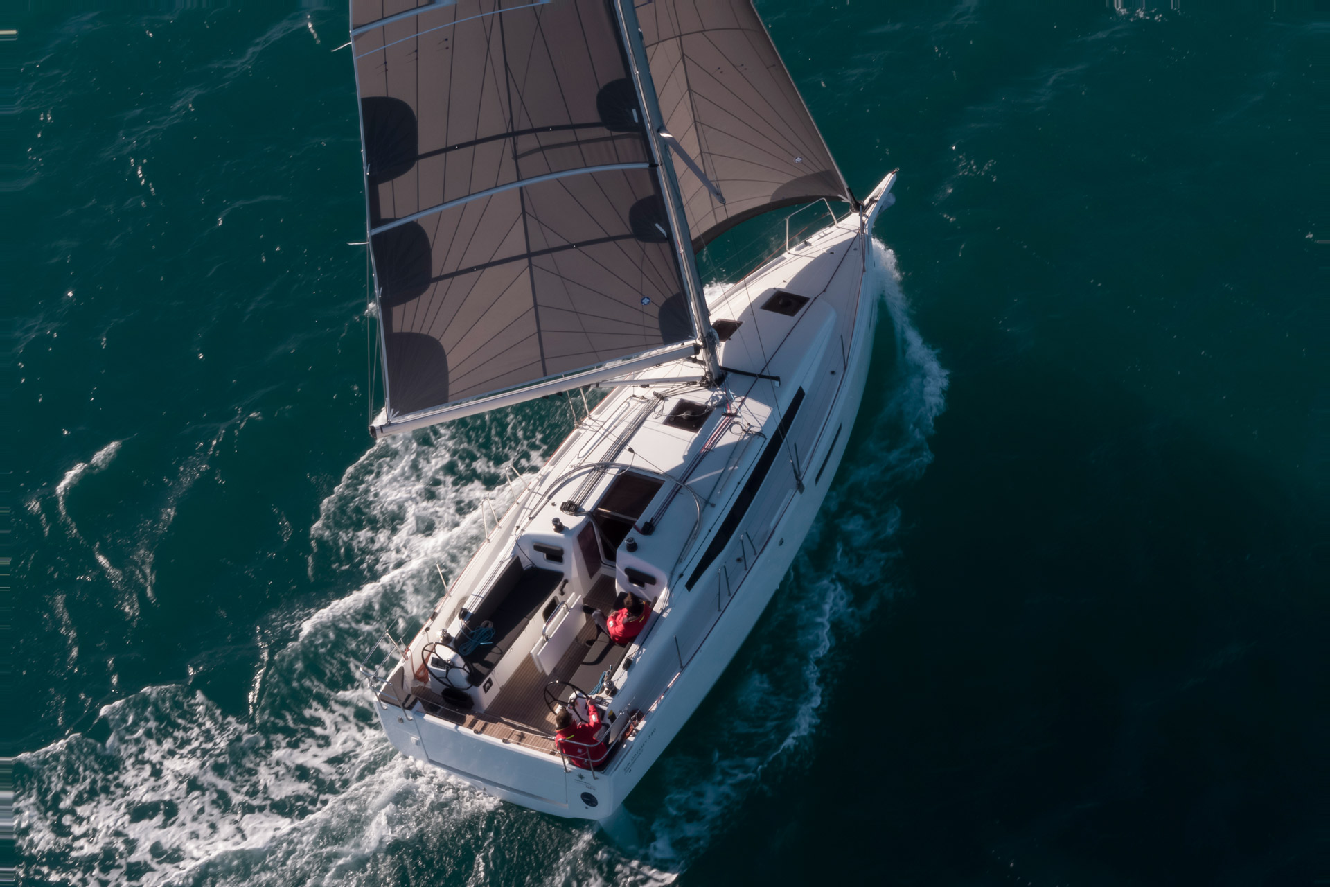 Designed with performance in mind, the Sun Odyssey 380 features a powerful hull with a long graceful waterline. A large cockpit, twin wheels, dual rudders, an integrated bowsprit, and a high aspect Selden rig combine to deliver an exceptional sailing experience that even the most competitive sailor will appreciate.