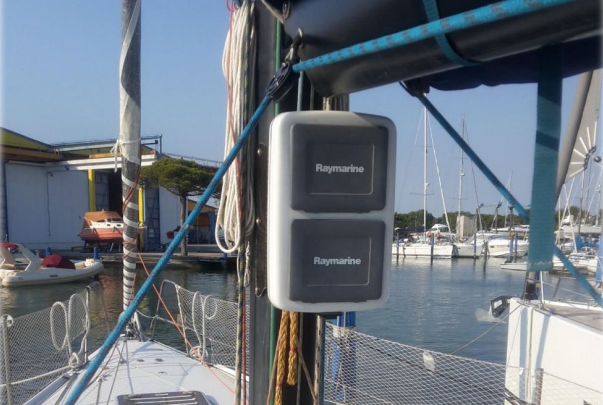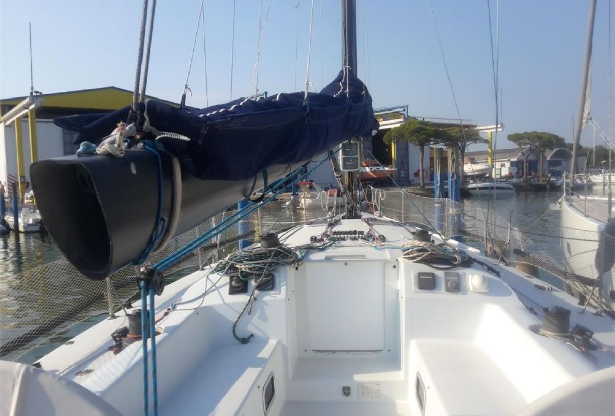 Attrezzato di tutto punto per le regate ha anche le vele ed i rulla fiocco e rulla trinchetta per la navigazione in crociera con equipaggio ridotto.