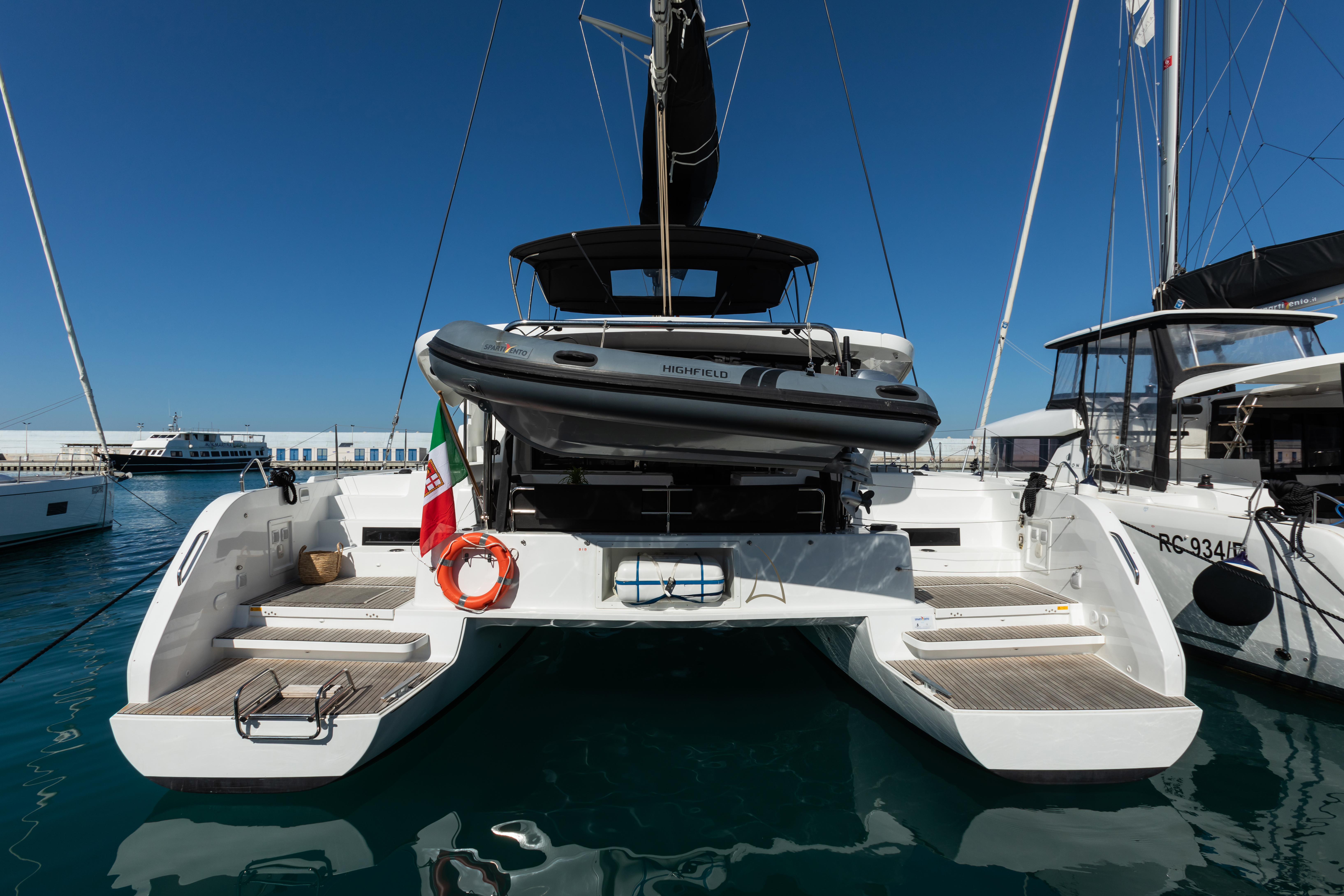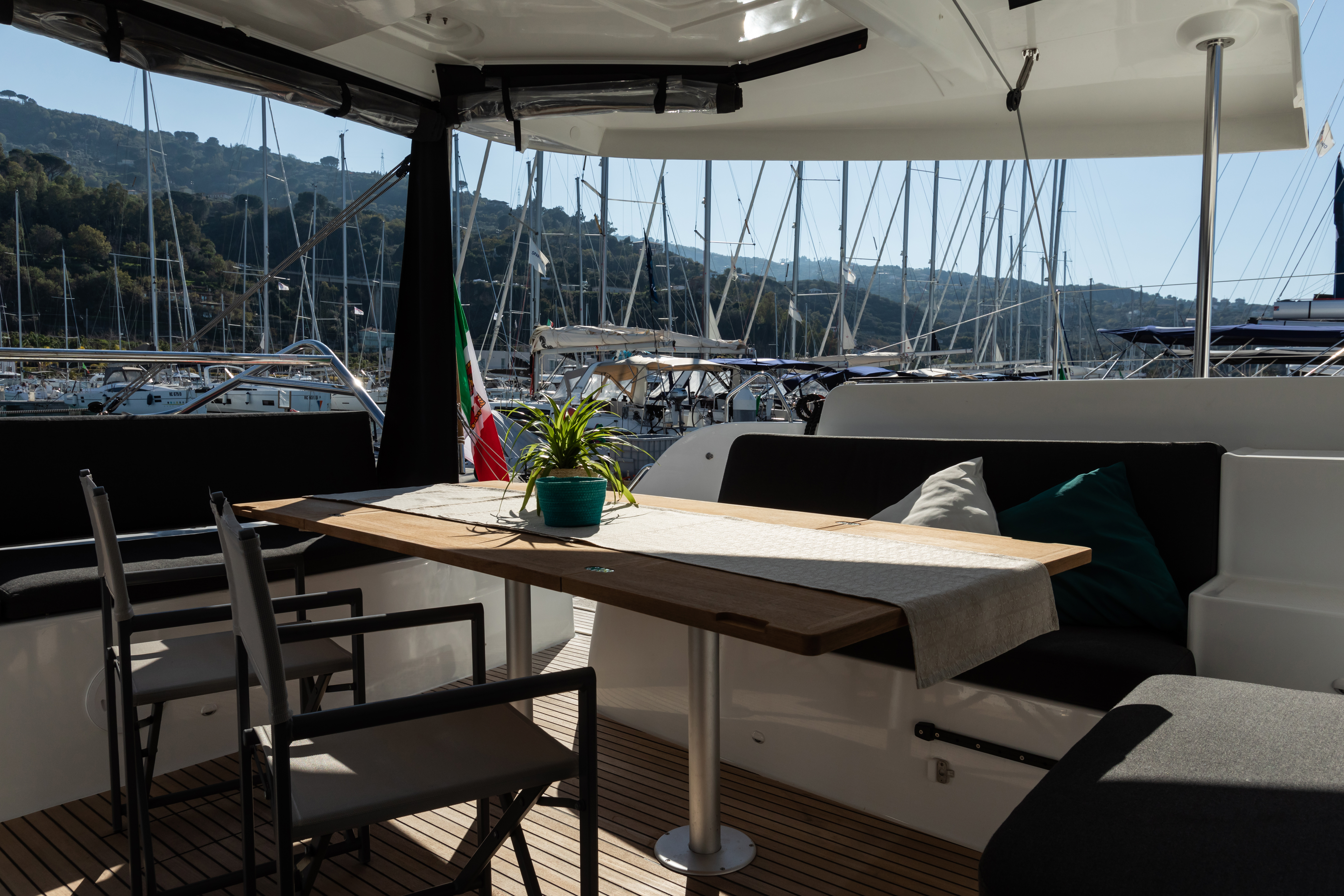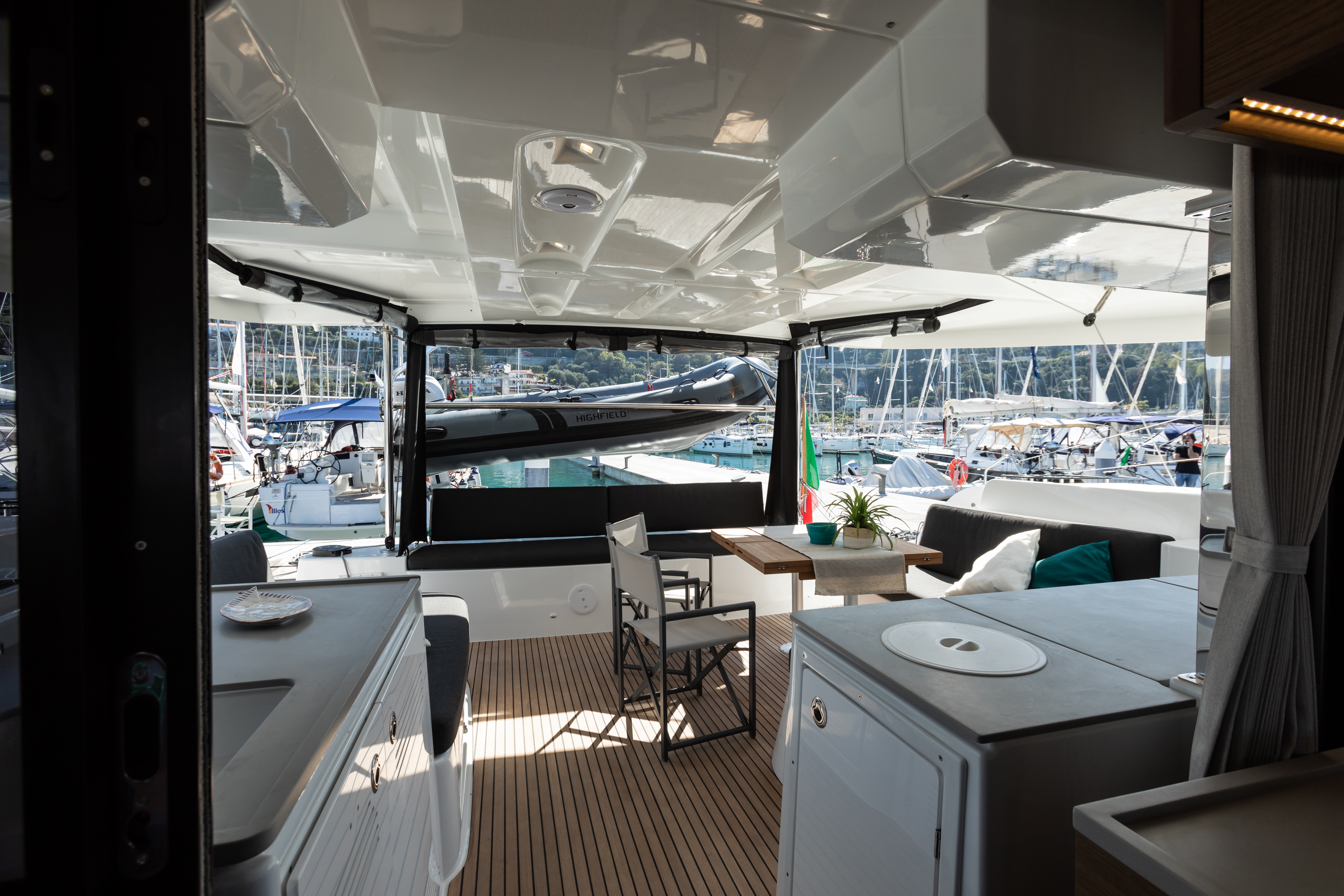 - Pozzetto di poppa e plancette in teak (richiede panca scorrevole)