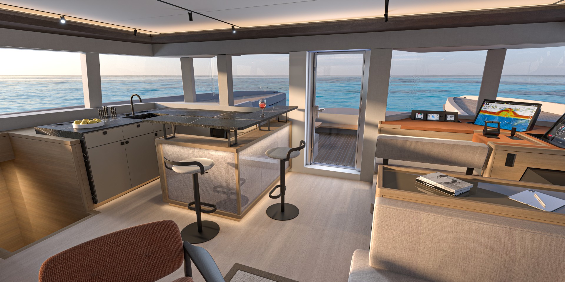 Ogni dettaglio è pensato per essere personalizzabile. L'EIGHTY 3 incarna lo spirito del motor yacht con la personalità Lagoon, grazie a scelte su misura in termini di mobili, rivestimenti e accessori.