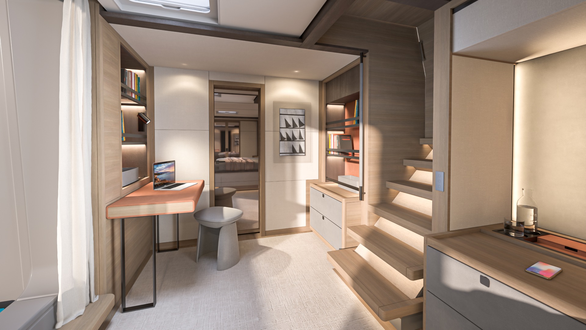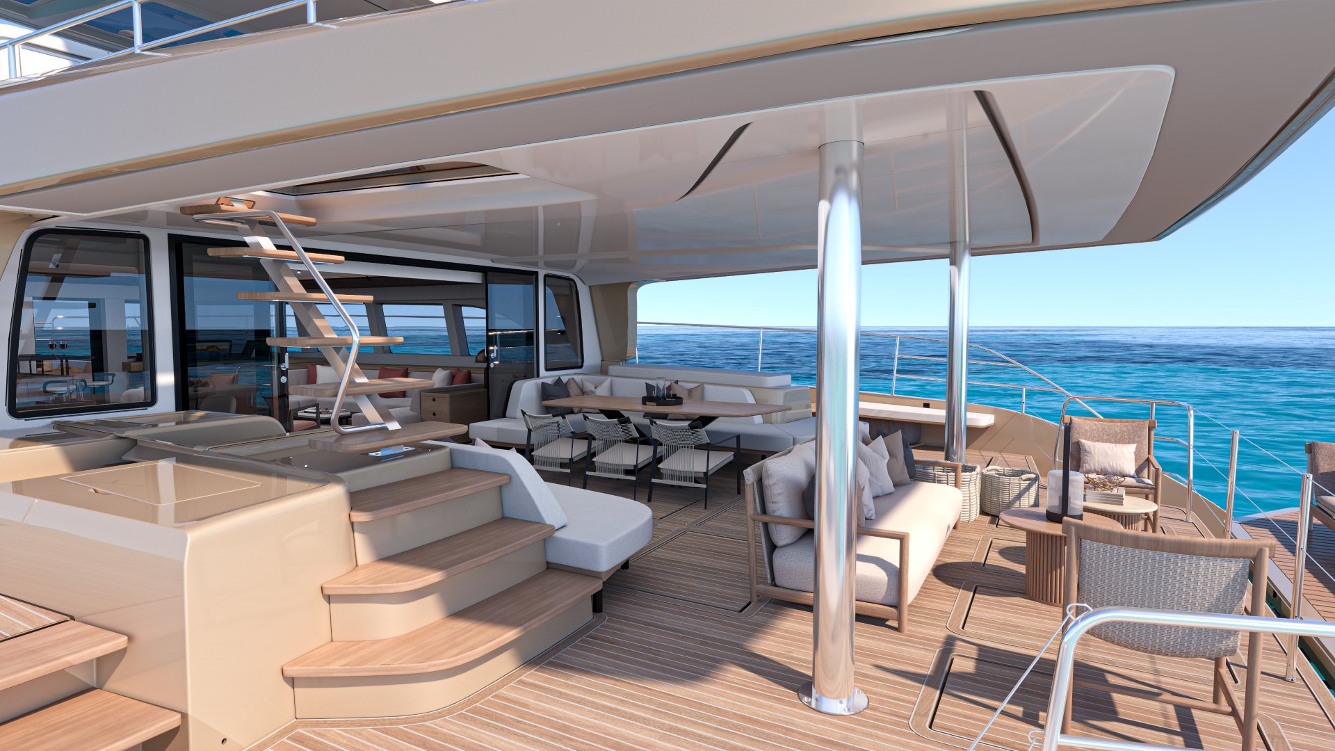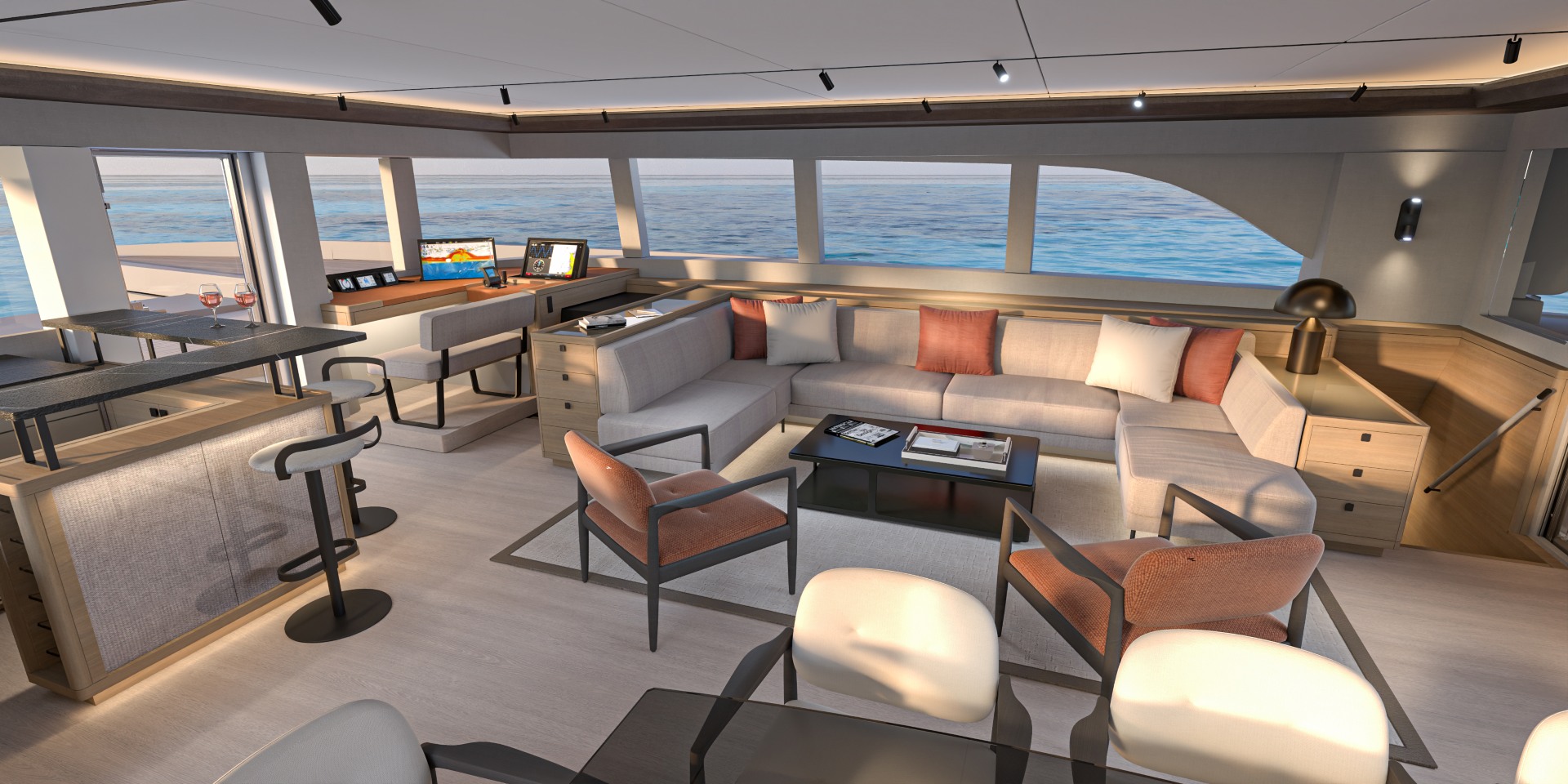 Ispirato ai codici architettonici contemporanei, ogni spazio abitativo a bordo ti invita a sfruttare appieno la luce e le viste mozzafiato a 360° sull'oceano.