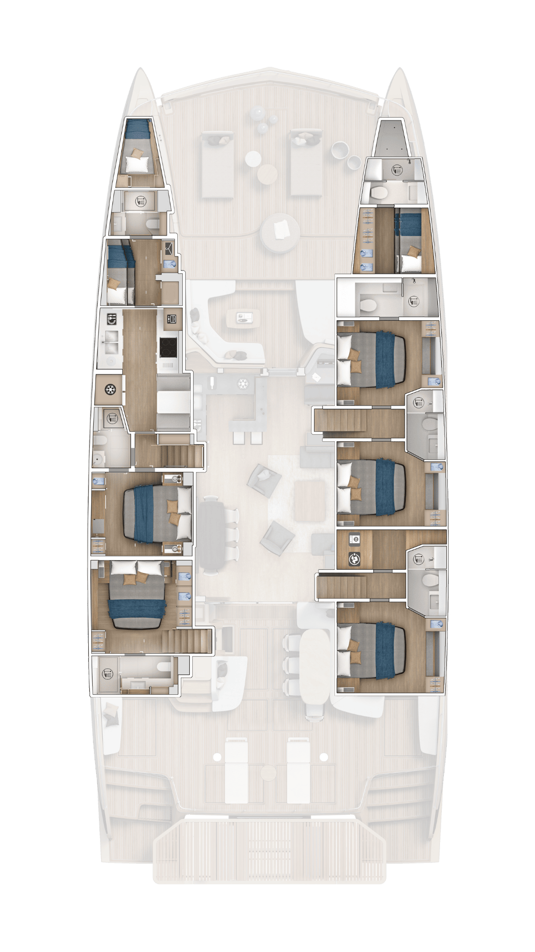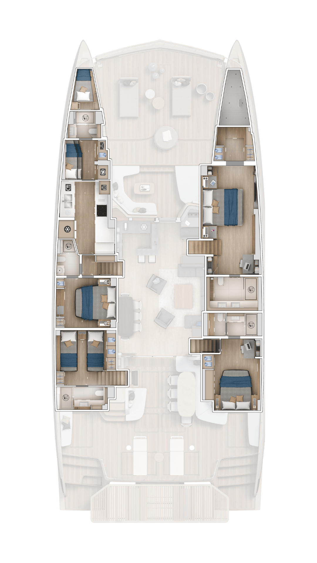 Dalla cabina armatoriale, il letto King Size vista mare, il terrazzo privato e le zone relax sono pensate per offrirti un comfort assoluto.