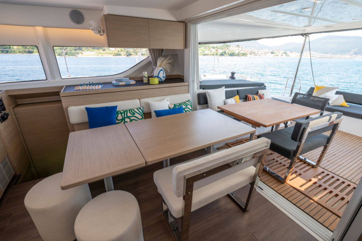 Lagoon ha immaginato una nuova visione della vita a bordo, presentando una barca versatile e dai confini modulari. Questo avanzamento permette di trasformare lo spazio consentendo di collegare a piacere l'interno con l'esterno tra il salone e il pozzetto.