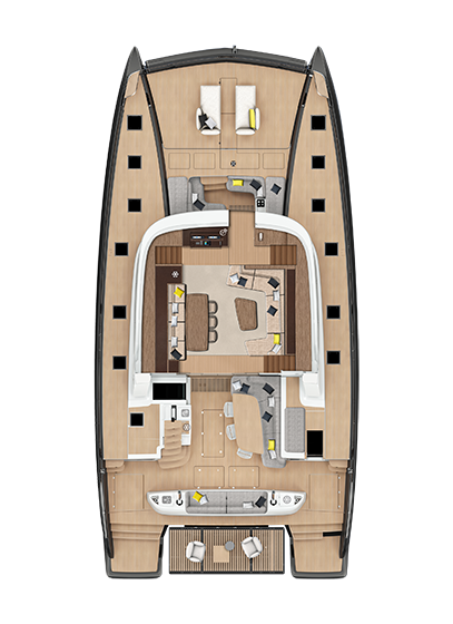 "Gli interni del nuovo SIXTY 7 sono l'ultima tappa di un'evoluzione contraddistinta da spazi aperti e continui che collegano perfettamente gli interni agli esterni ed offrono una vista straordinaria sulla bellezza circostante."
