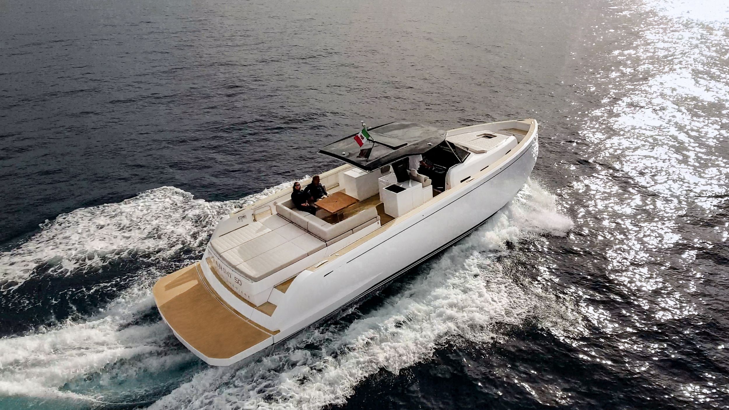 Lo scafo a v profondo a geometria variabile, 16° a poppa ed oltre 50° nelle sezioni prodiere garantisce ottima tenuta di mare e allo stesso tempo una perfetta manovrabilità, per planare in sicurezza e velocità.
