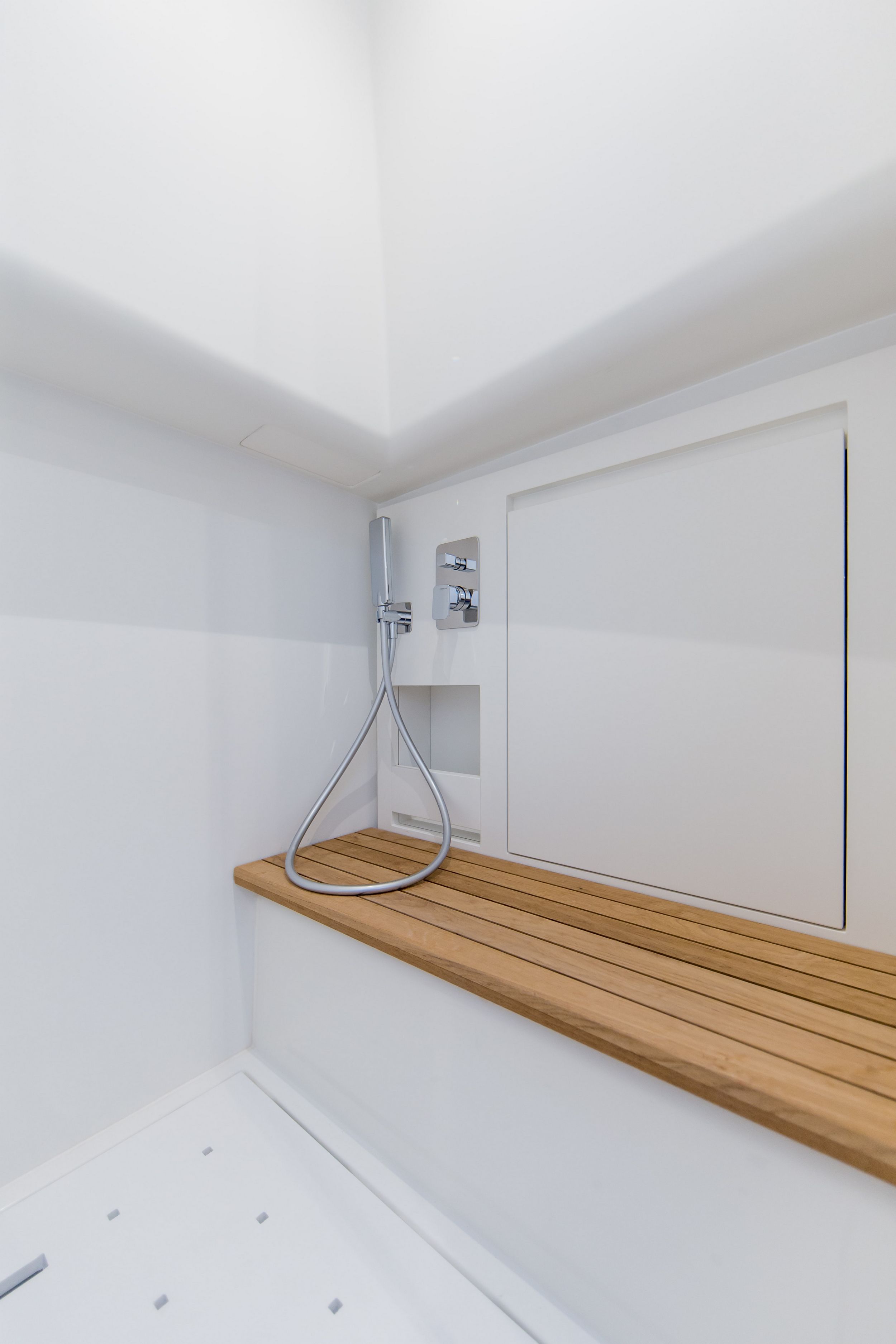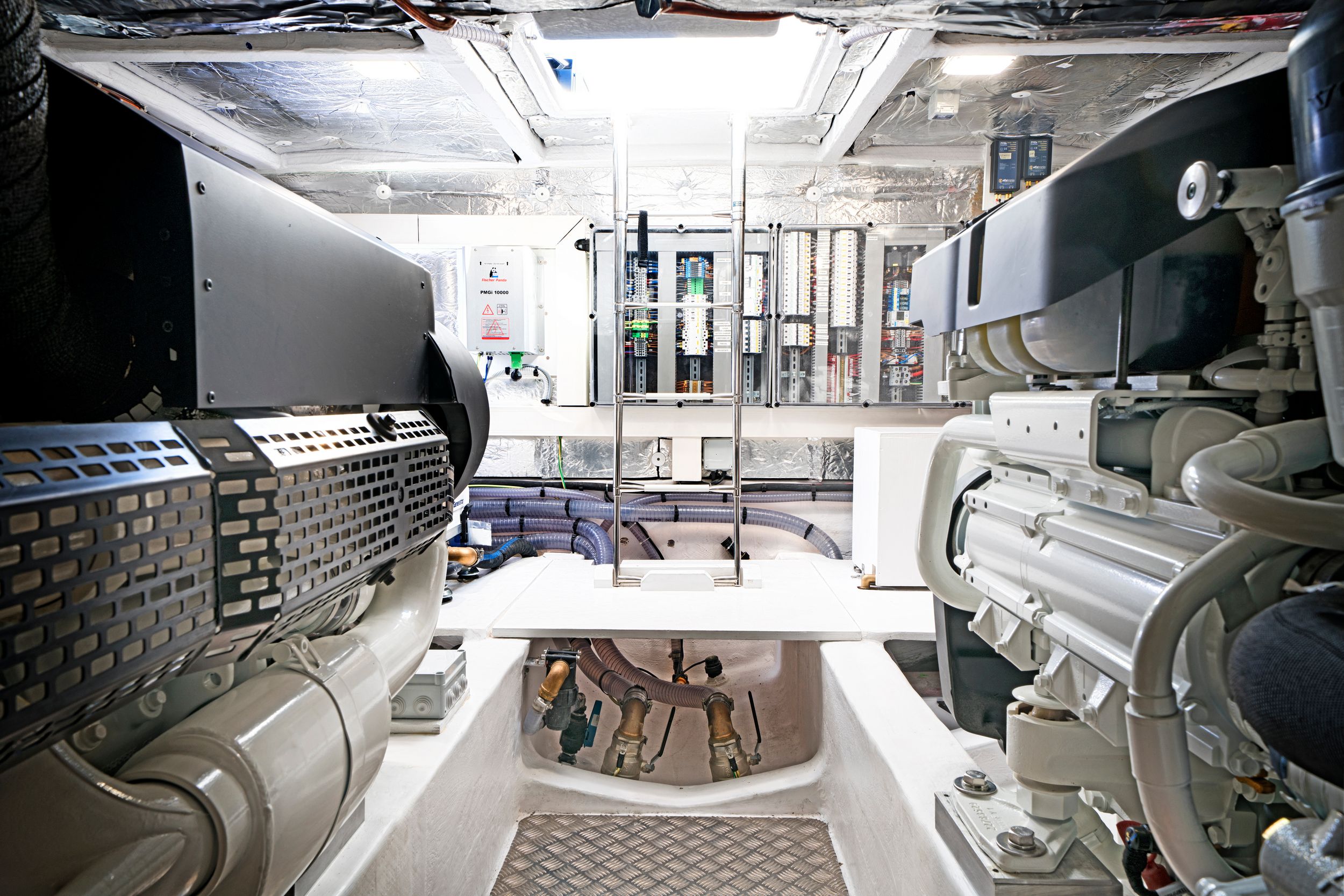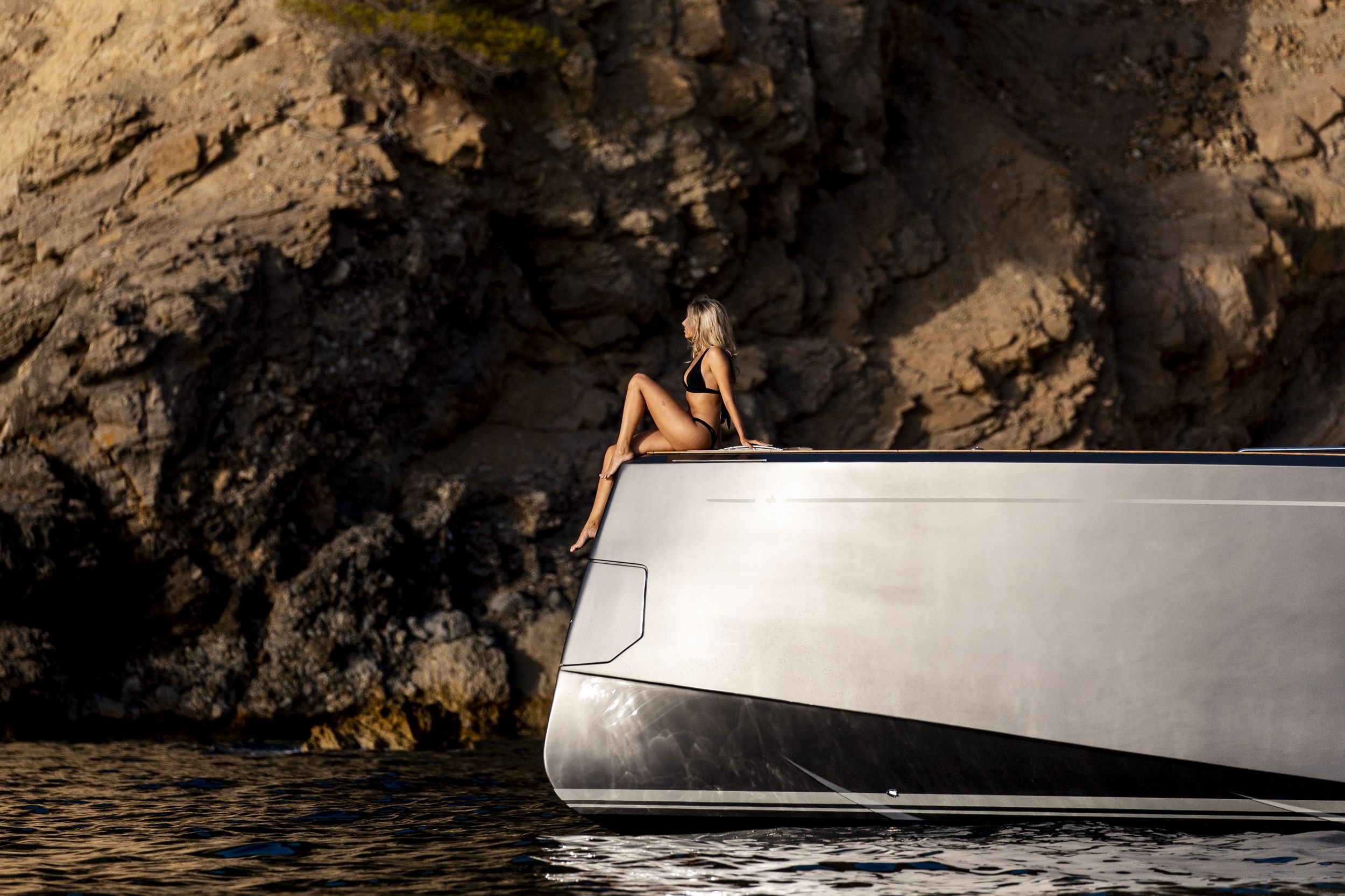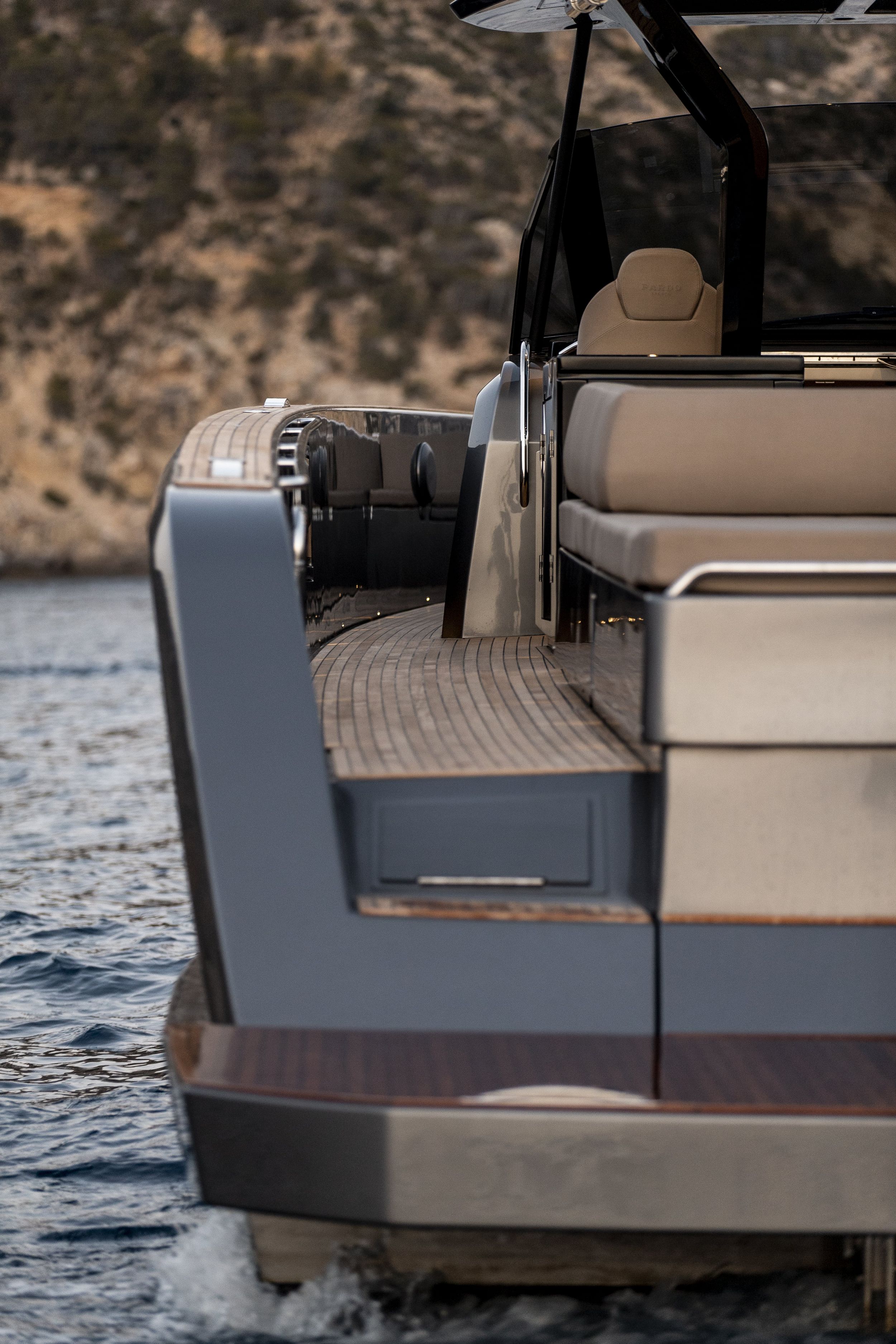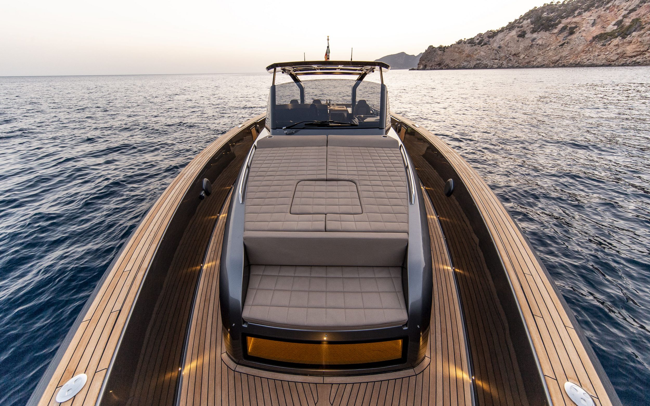 Il piano di coperta è sviluppato su una conformazione walkaround su un unico piano da poppa a prua senza gradini ed è interamente protetto da murate rialzate per dare garanzia di sicurezza.