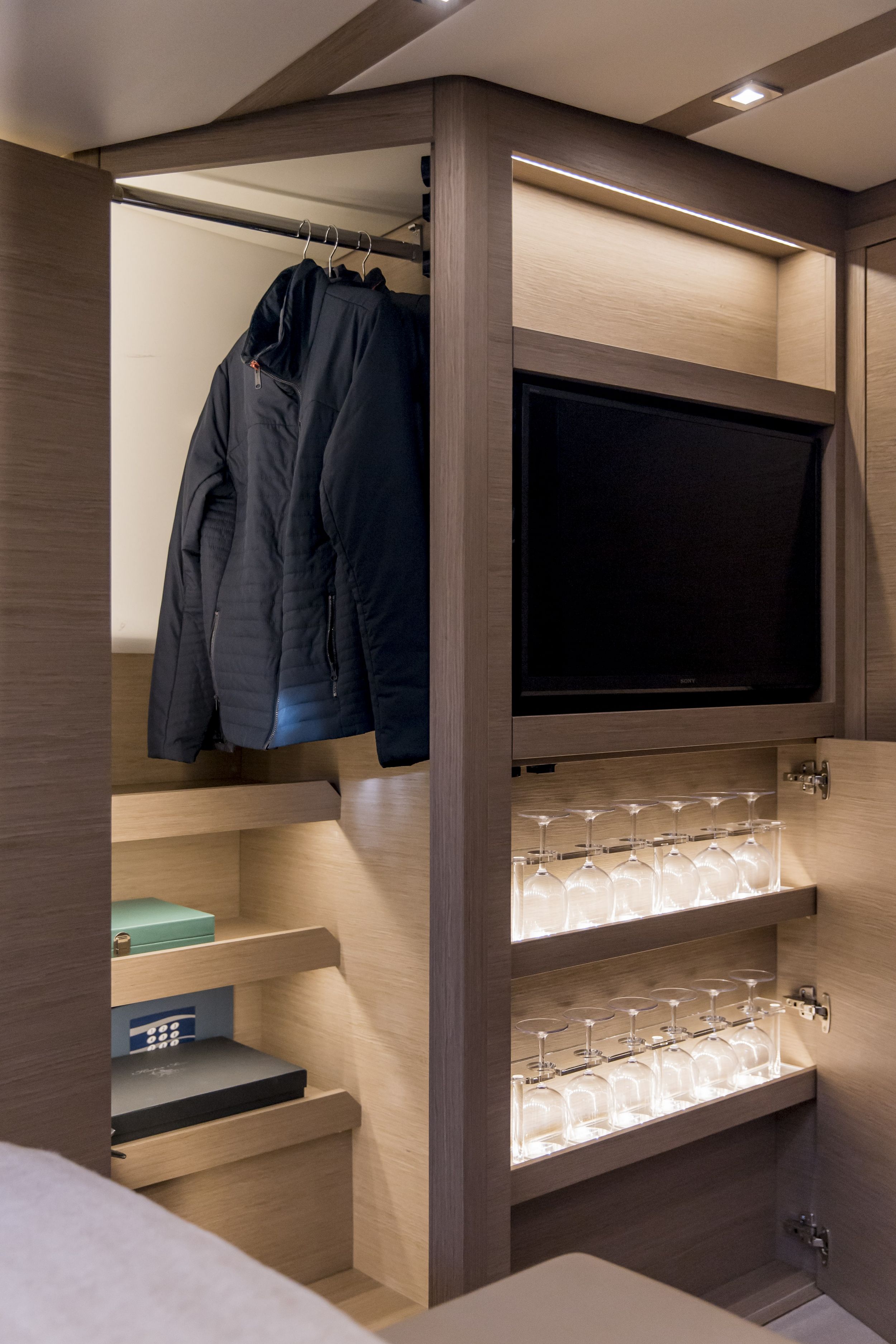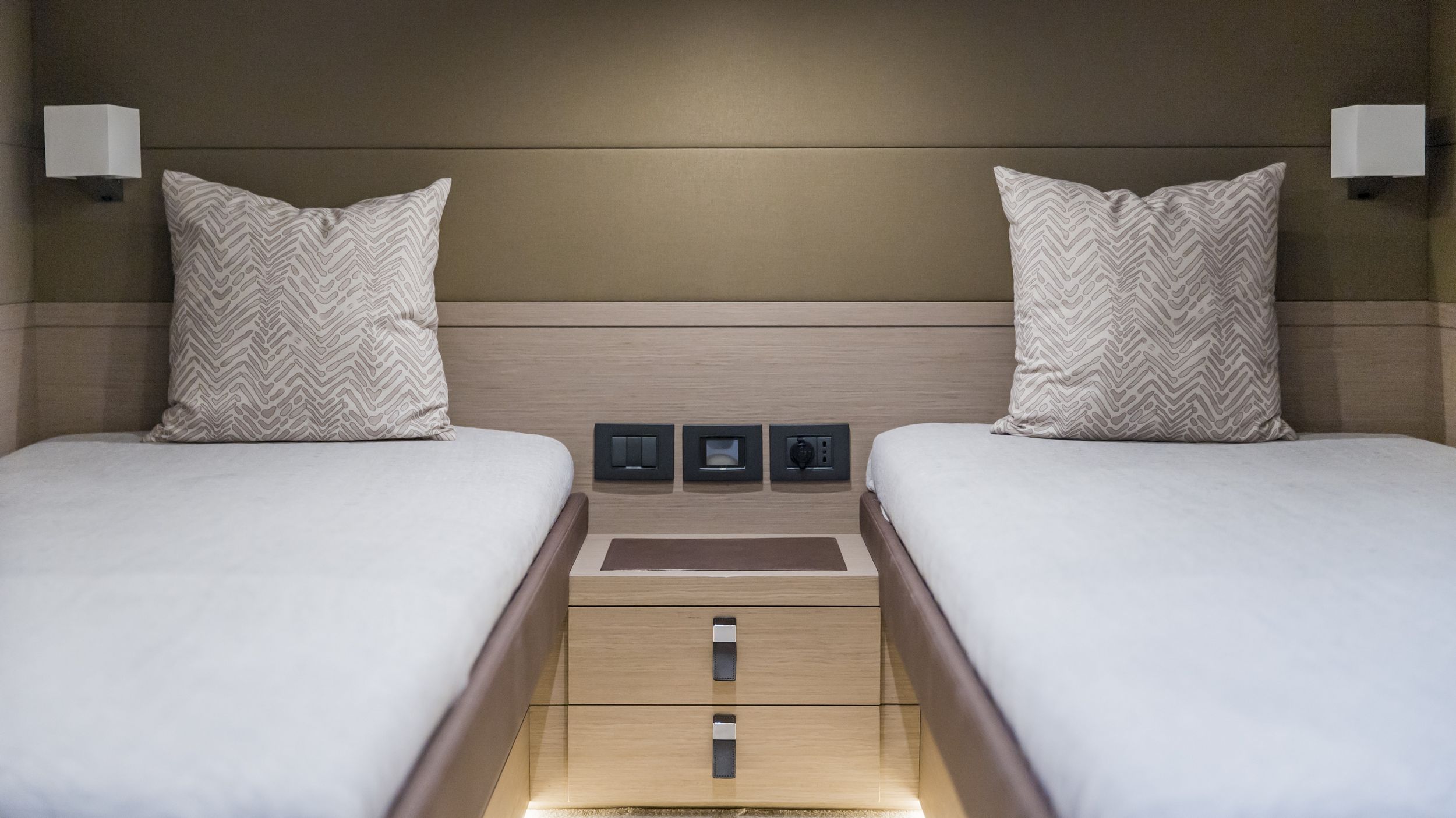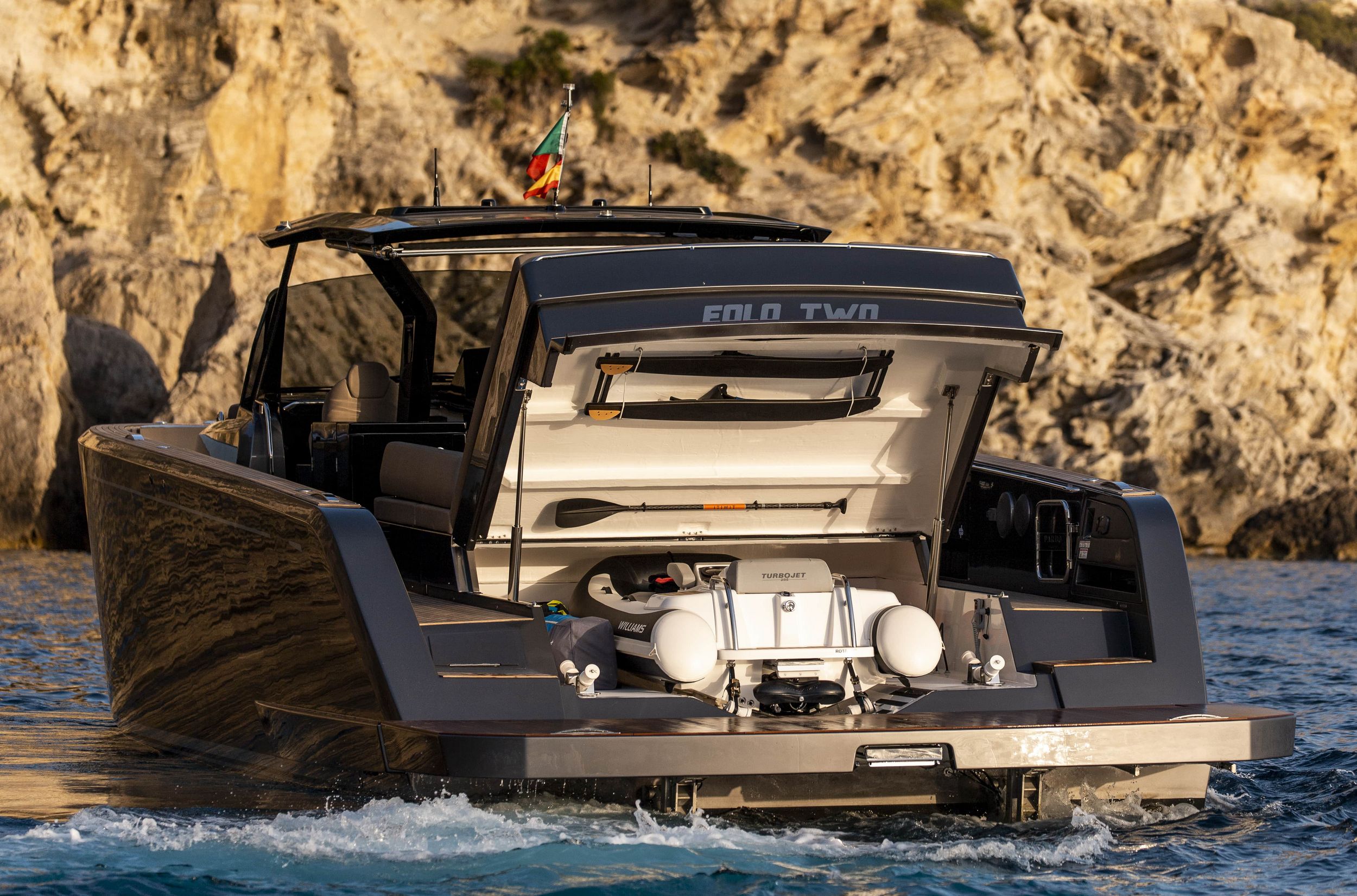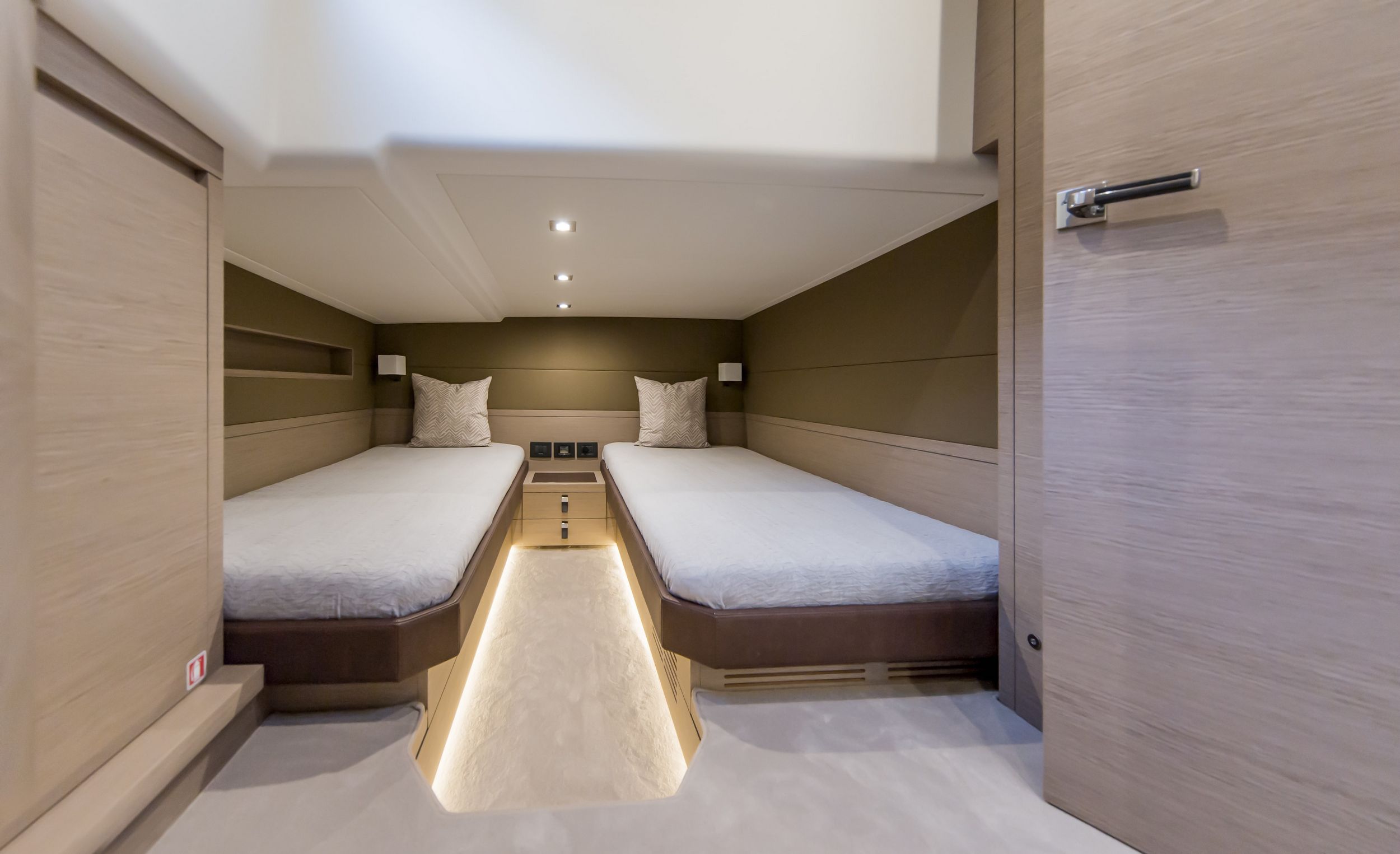 Caratteristica forte degli interni sono le altezze ottimali, il grande open space con due cabine e due bagni, la possibilità di avere anche la cabina per il marinaio. la linearità e la raffinatezza degli arredi vengono esaltati dall’accurata scelta dei legni e dall’attenzione ai dettagli che rendono gli interni del Pardo 50 un’eccellenza del made in italy.