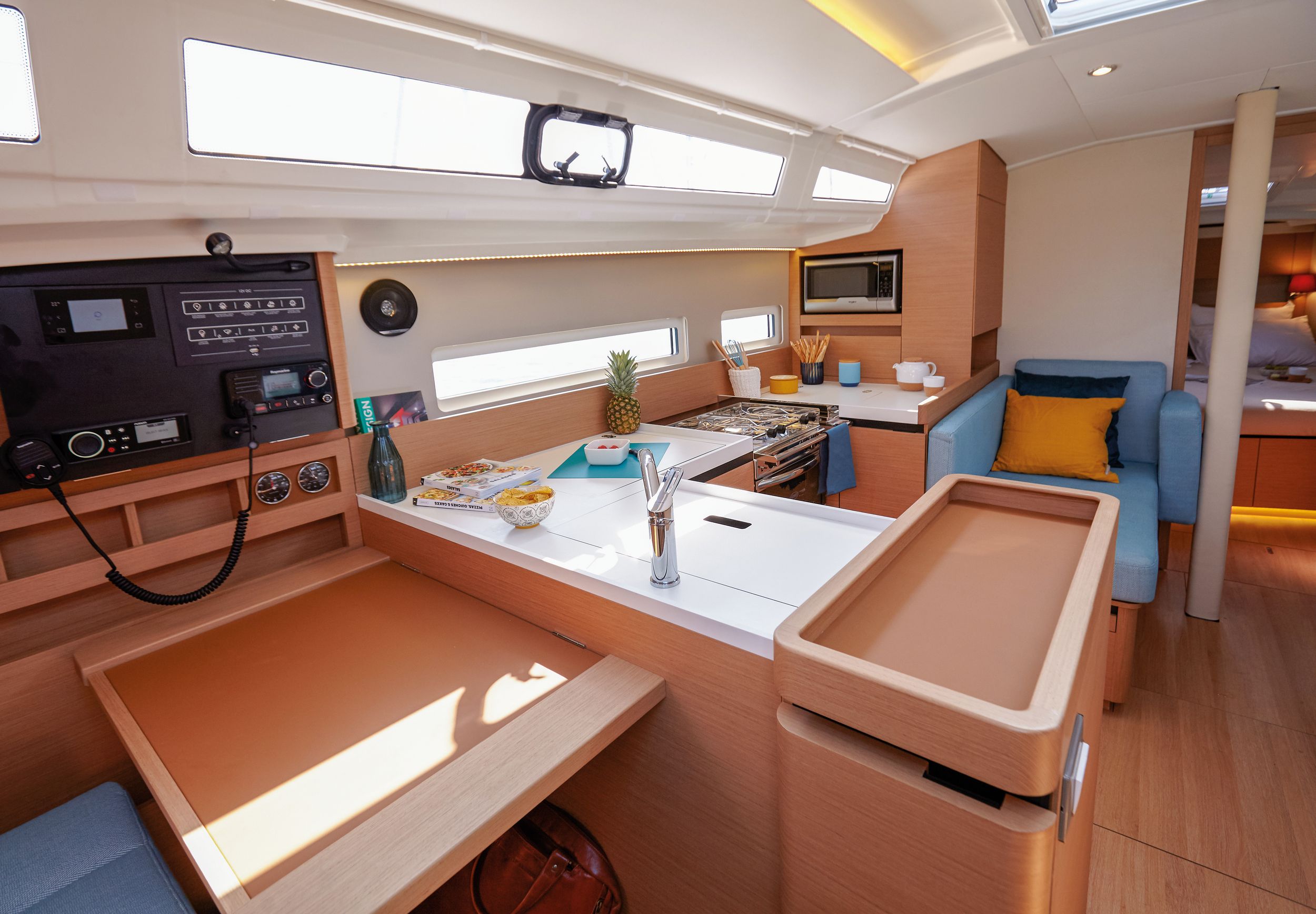 Vero e proprio invito al benessere e al confort, il Sun Odyssey 410 riprende gli standard della gamma e offre una nuova visione della vita a bordo. Firmato da Jean-Marc Piaton e dalla sua equipe, il design interno rivela un potenziale incredibile per una barca di queste dimensioni.