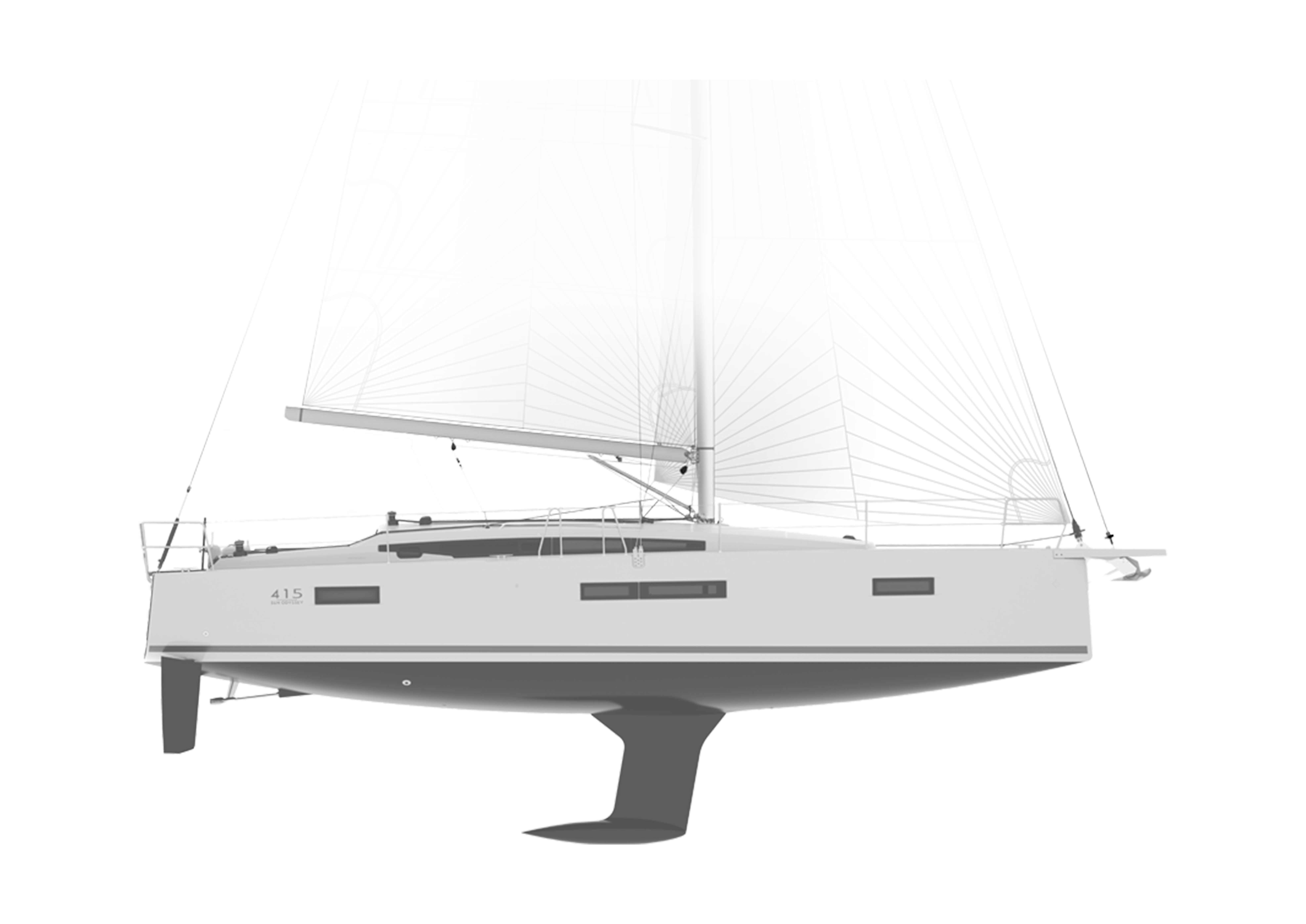 Nel nuovo Sun Odyssey 415 la carena è derivata dall'iconico Sun Odyssey 410. Potente ed elegante, questo scafo si caratterizza per la prua rovesciata, il brione fuori dall'acqua e lo spigolo vivo continuo fino a prua. Progettato per le crociere in famiglia, il Sun Odissey 415 garantisce prestazioni eccellenti e offre una sensazione al timone unica e una navigazione sicura, grazie alla doppia pala del timone con cuscinetti autoallineanti. Il peso complessivo più leggero della barca, unito a una maggiore superficie velica, garantisce ancora più sensazioni e prestazioni. La versatilità del nuovo Sun Odyssey 415 è unica sul mercato. Qualunque cosa si desideri fare e ovunque si voglia navigare, questo modello si adatterà perfettemente a tutte le esigenze grazie alle 4 opzioni di piano velico e alle 3 diverse opzioni di chiglie o derive.