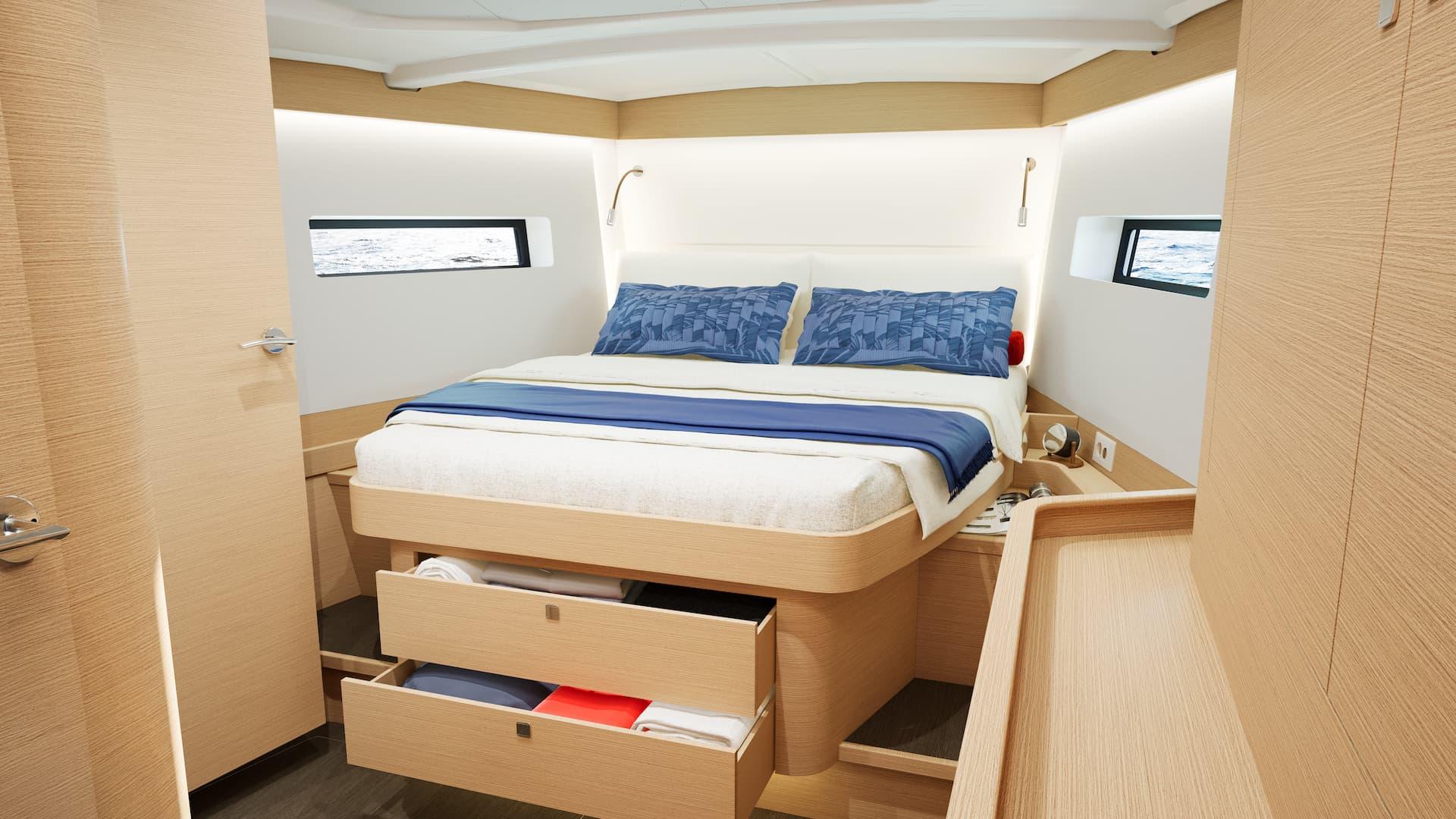 Il Sun Odyssey 455 si distingue per una nuova carena performante ed elegante e per una silhouette moderna ed equilibrata, progettata per semplificare la vita del velista e valorizzare i momenti di condivisione. Il ponte walkaround senza gradini, la doppia postazione di guida ergonomica e l’ampio pozzetto rendono ogni momento in mare un’esperienza fluida e sicura. Ogni dettaglio, dagli ingegnosi spazi di stivaggio ai materiali robusti, testimonia il know-how Jeanneau al servizio delle prestazioni, del comfort e della durata.