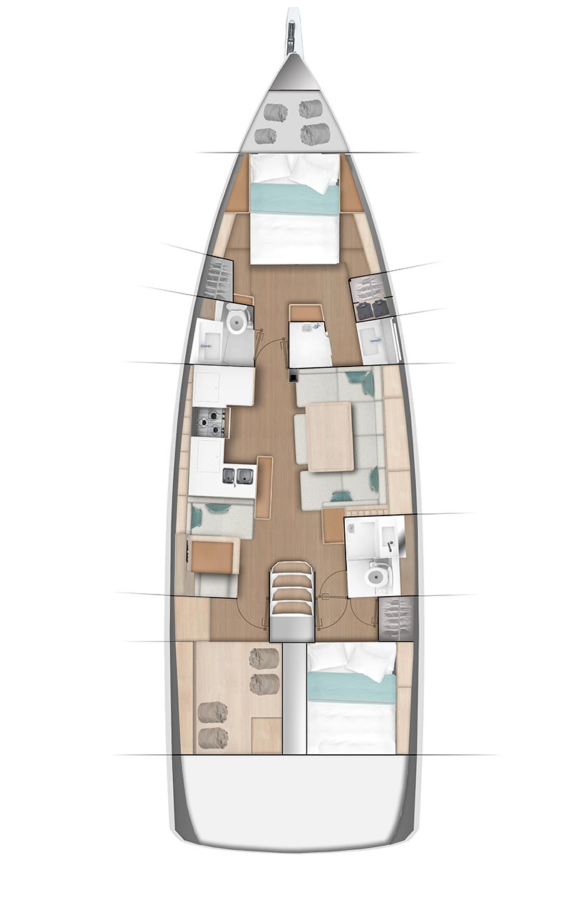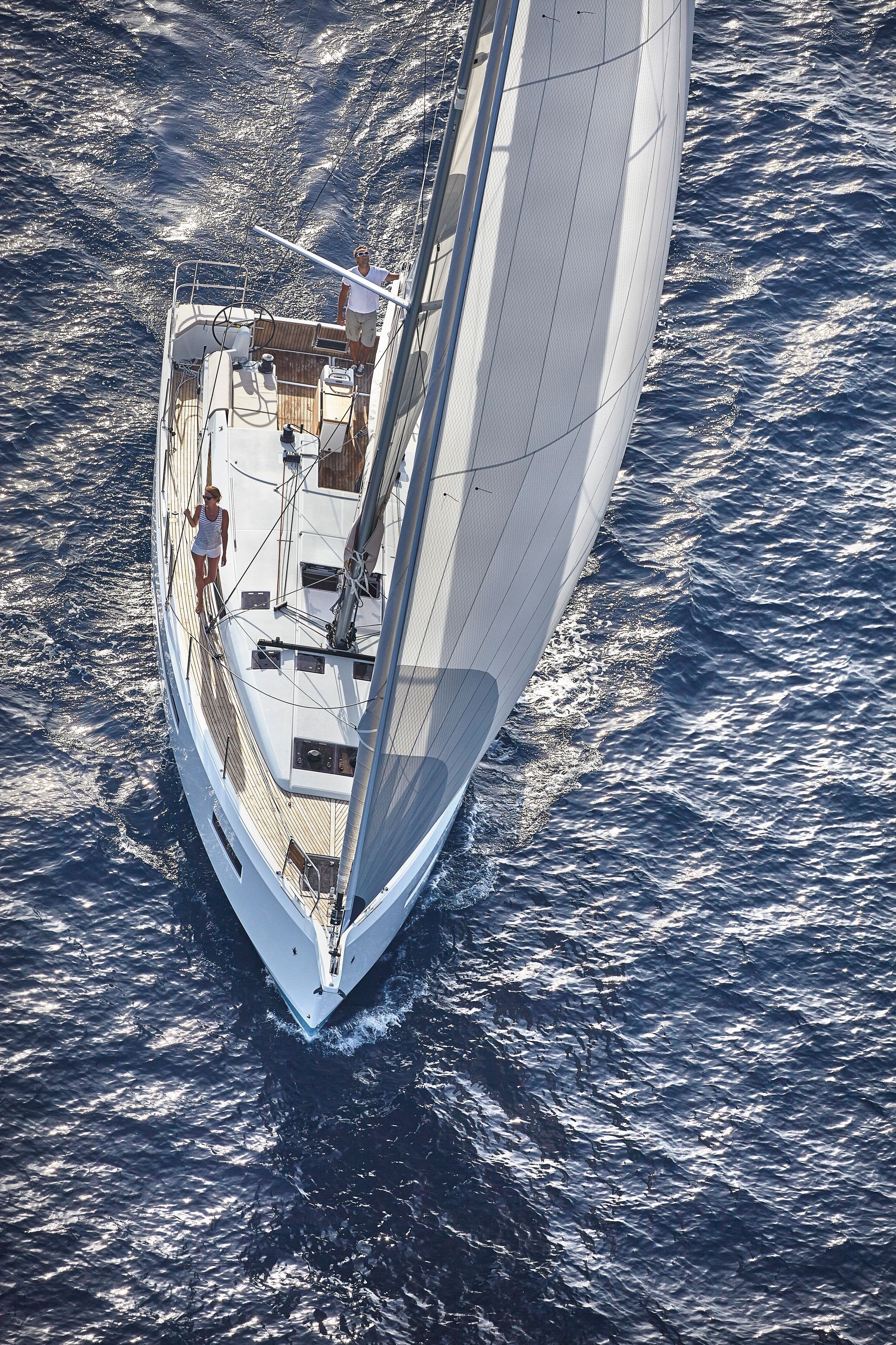 Questa barca a vela da 49 piedi rivoluziona la navigazione: è l’unica della sua categoria a proporre una circolazione a bordo priva di ogni ostacolo. Il passavanti scende direttamente al livello del pozzetto!